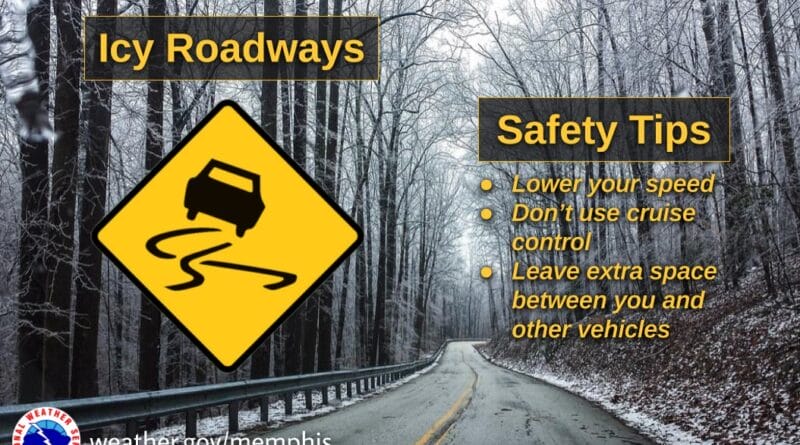 Read moreThe National Weather Service in Memphis warns of icy roads and low visibility, urging drivers to exercise caution.