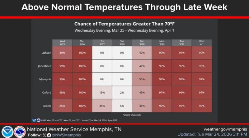 Temperatures are forecast to remain above normal through late this week and into next week, according to weather reports.