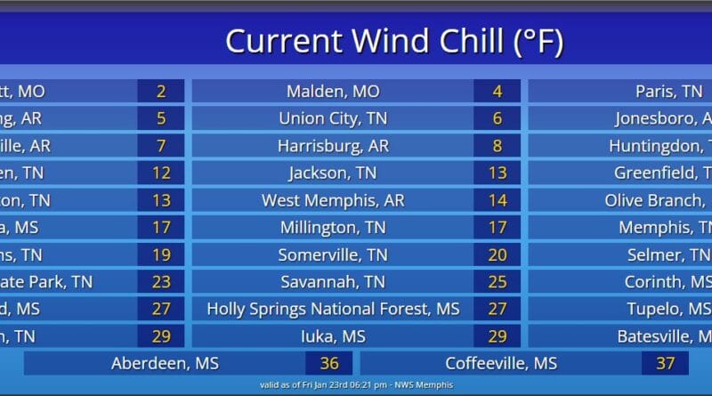 Arctic air brings cold wind chills to Mid-South on Jan. 23, 2026