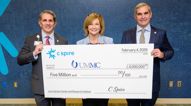 C Spire announced a $5 million donation to support the construction of a new home for the University of Mississippi Medical Center’s Cancer Center and Research Institute.