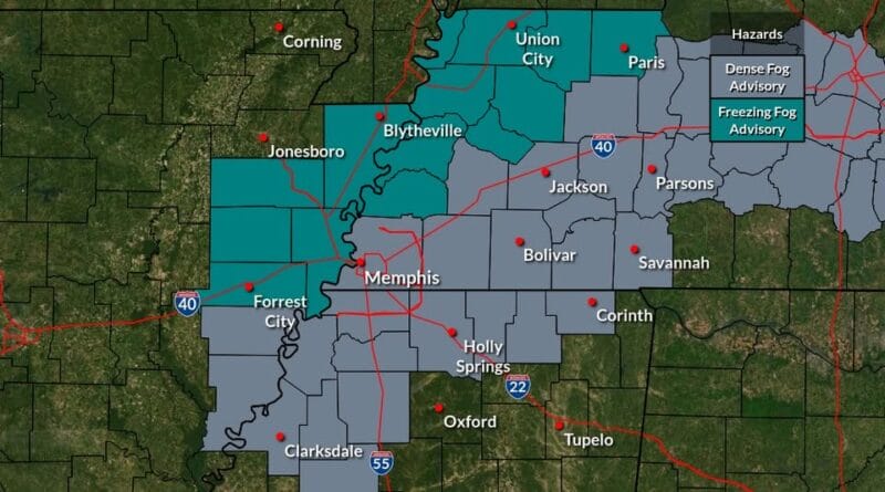 Dense fog and freezing fog advisories are in effect through 9 a.m. for much of the Mid-South, according to weather officials. The advisories warn of reduced visibility and hazardous travel conditions in the region.