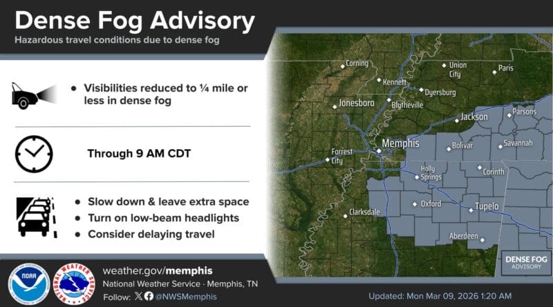 Dense fog prompts advisory until 9 a.m. in the area