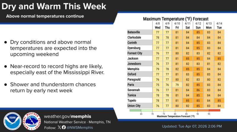 Dry conditions and above-normal temperatures are expected to persist through the upcoming weekend, according to weather forecasts. The warm weather is likely to continue as high pressure dominates the region.