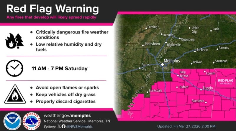Elevated Fire Risk Expected Across Mid-South, Including North Mississippi