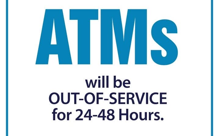 First Choice Bank has announced that all of its ATMs will be out of service starting Feb. 12 for scheduled maintenance.