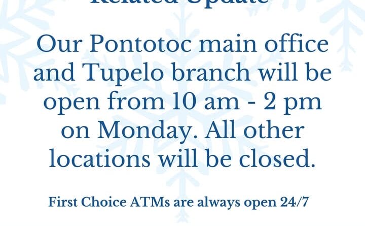First Choice Bank has issued a weather safety advisory to its customers and employees. The bank emphasizes that safety remains its top priority during the current weather conditions.