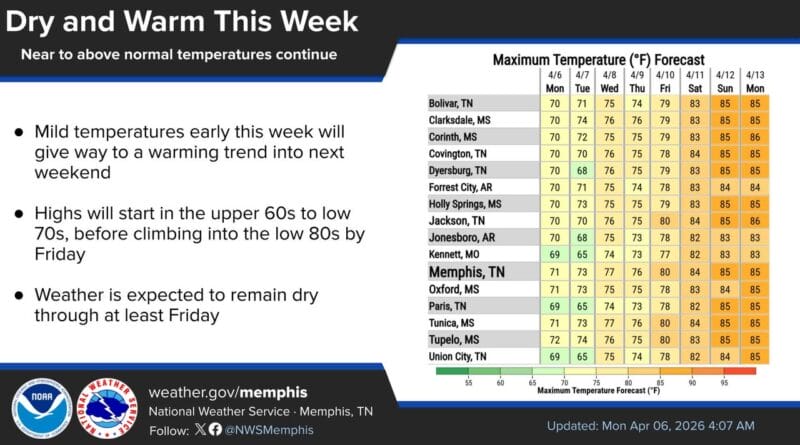 Mild weather begins this week, followed by warming trend with temperatures reaching the 80s