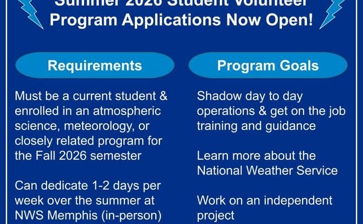 The National Weather Service has announced that applications are now open for its summer student volunteer program. The initiative offers college students the opportunity to gain hands-on experience working alongside NWS meteorologists.