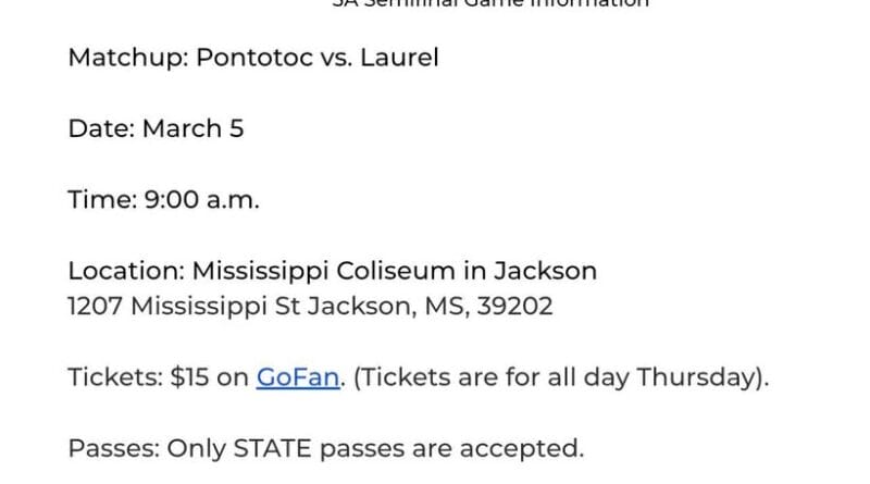 The Pontotoc Lady Warriors will play Laurel in the 5A girls basketball semifinal on March 5. The game is scheduled to start at 9 a.m. at the Mississippi Coliseum in Jackson.