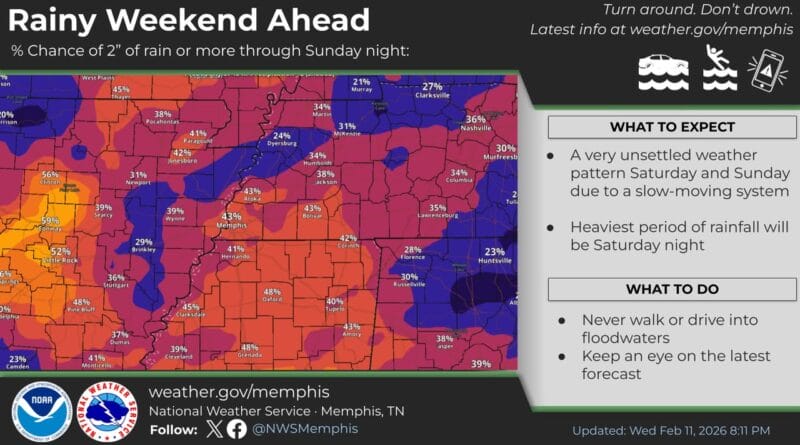 Rainfall totals for the weekend are trending downward, with forecasts now indicating between 1.5 and 2 inches of rain. The weather pattern is still expected to bring wet conditions across the region, according to meteorologists.