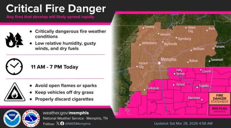 Across the remainder of the Mid-South, a Fire Danger Statement has been issued, signaling elevated fire risk in those areas. Authorities urge residents to exercise caution and avoid activities that could ignite fires.