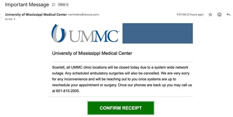 The University of Mississippi Medical Center has issued a warning about recent communications regarding clinic closures. The hospital confirmed that emails, texts, and calls about closures or requests to send messages are legitimate and originate from an off-site vendor.