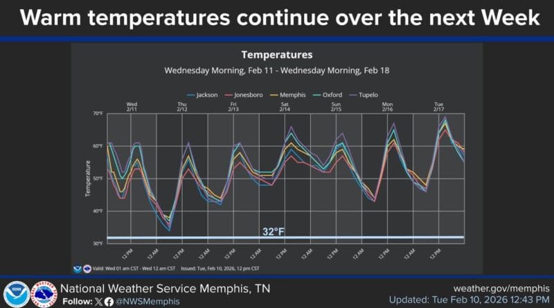 Temperatures across the Midsouth are expected to stay warm in the coming days, according to weather officials. The region has experienced above-average temperatures for several days, and this trend is expected to continue.
