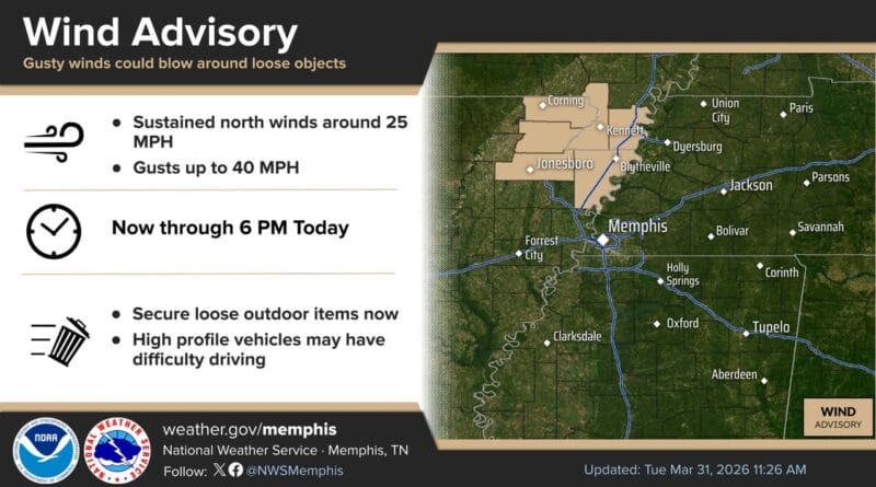 Wind Advisory issued for parts of northeast Arkansas and Missouri Bootheel